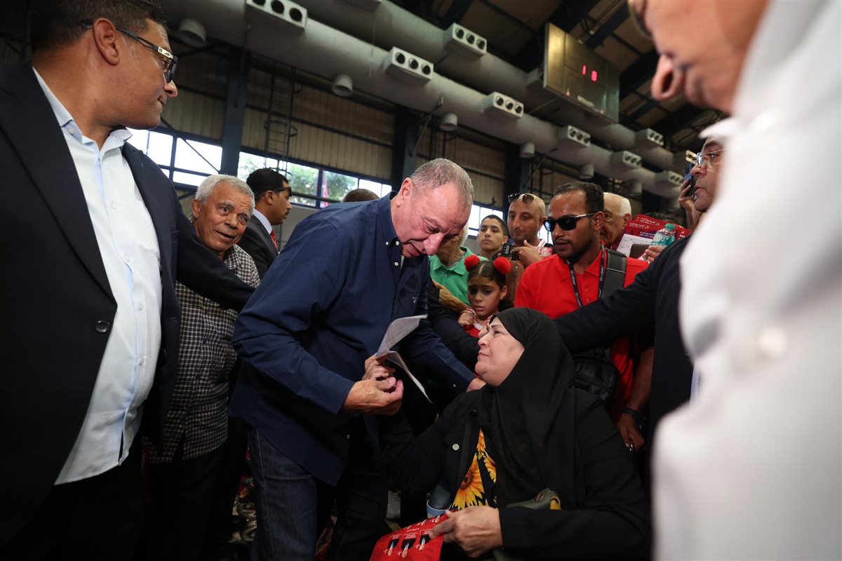 وحظى محمود الخطيب رئيس النادي الأهلي باستقبال وترحيب حار من أعضاء الجمعية العمومية بالنادي الأحمر وحرص على الاستماع على مطالبهم.
