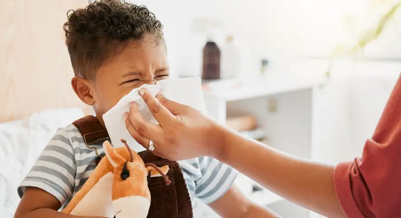 الطفل الذي يعطس أو يسعل كثيرًا، أو يصاب بشكل متكرر بطفح جلدي أو شرى، أو يعاني من آلام في المعدة أو تقلصات أو غثيان بعد تناول أطعمة معينة، قد يكون مصابًا بالحساسية.