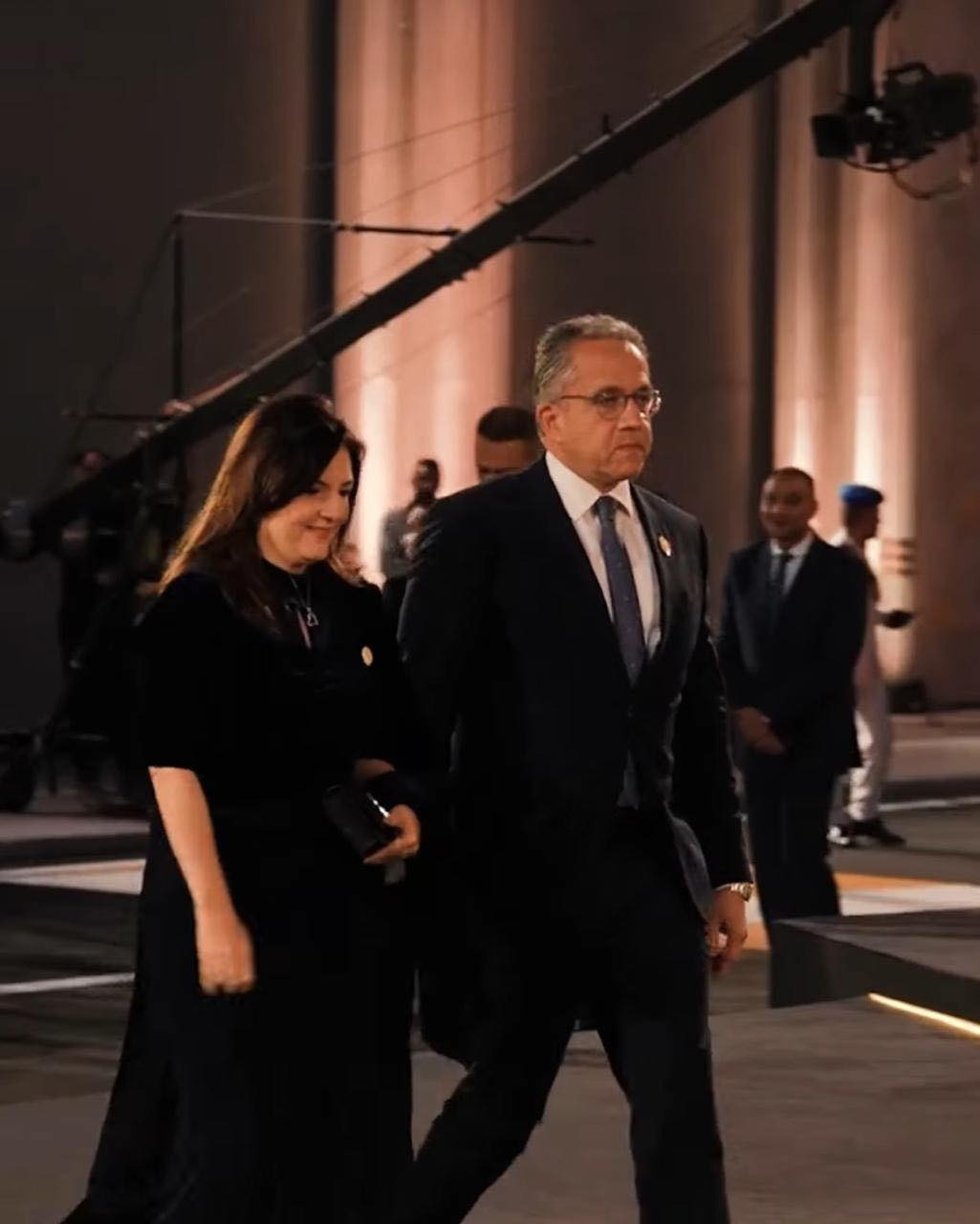 الدكتور خالد العناني وزوجته يصلان حفل افتتاح المتحف المصري الكبير