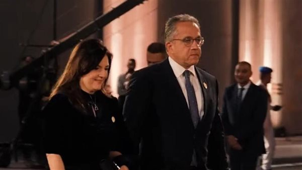 الدكتور خالد العناني وزوجته يصلان حفل افتتاح المتحف المصري الكبير، الذي يقام حاليا ، وذلك بحضور الرئيسي عبدالفتاح السيسي، والعديد من الملوك وزعماء الدول، ورؤساء الدولة.