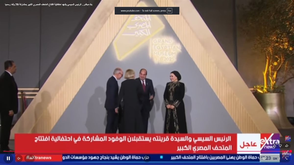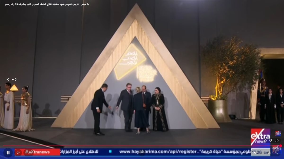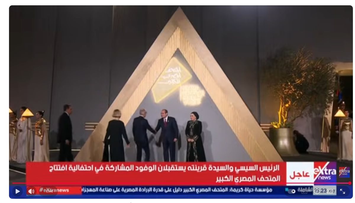 وجاء هذا بعد وصول الرئيس عبد الفتاح السيسي لمقر المتحف المصري الكبير استعدادًا لبدء فعاليات الاحتفال بافتتاحه رسميًا.