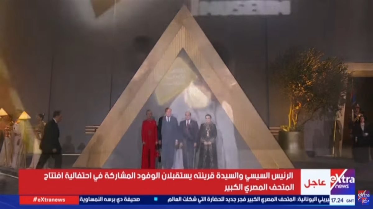 الرئيس عبد الفتاح السيسي، رئيس الجمهورية، وقرينته السيدة انتصار السيسي، يستقبلان الوفود رسميًا للمشاركة في احتفالية افتتاح المتحف المصري الكبير.