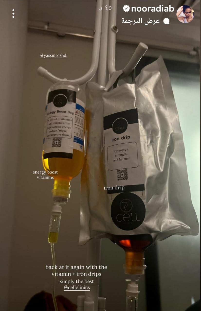 وشاركت نور عمرو دياب، صوره من داخل المستشفى، عبر حسابها الرسمي على موقع التواصل الإجتماعي وتبادل الصور إنستجرام، بخاصية الاستوري، وكتبت نصًا: “عدت من جديد لجلسات فيتامين الحديد بالتنقيط”.