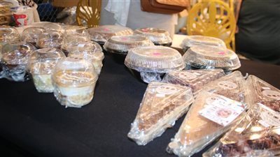أسفل خيمة تشغل مترين من معرض الدندوشات لدعم المشروعات الصغيرة والمتوسطة المقام بنادي طلائع الوراق، تتراص أكواب الحلوى وعلب